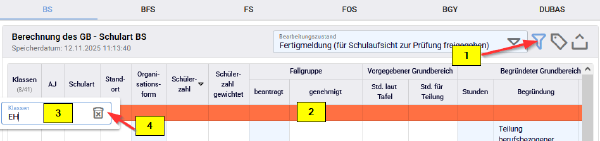 - bei diesem Schritt sieht nur das zuständige Fachreferat der Regionalstelle die Berechnungen (andere Regionalstellen können die Berechnungen im Schulmodul nicht sehen)