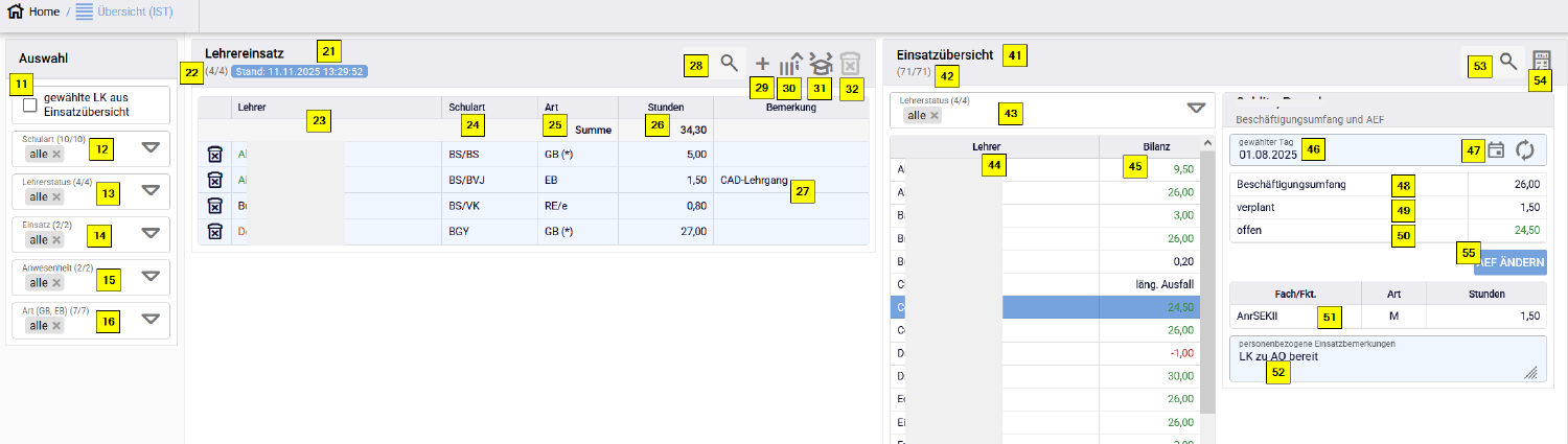 Aufruf: Personaleinsatz/Übersicht (IST)