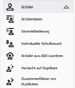 | 1 | Aufruf | Schüler / Zusammenführen von Duplikaten | bitte nur nutzen, wenn Schülerduplikate im Programm vorhanden sind |