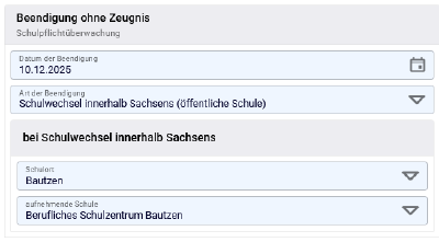 | 2 | Ausbildung ab | Datum des ersten Schultages einstellen | vorgefüllt mit 01.08.XXXX |