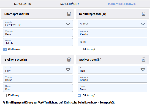 wichtig: Nur wenn die Vertreter eine Veröffentlichung im Schulporträt wünschen, darf bei Erklärung der Haken gesetzt werden.