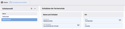 Aufruf: Menü Schule/Kooperationsschulen wählen