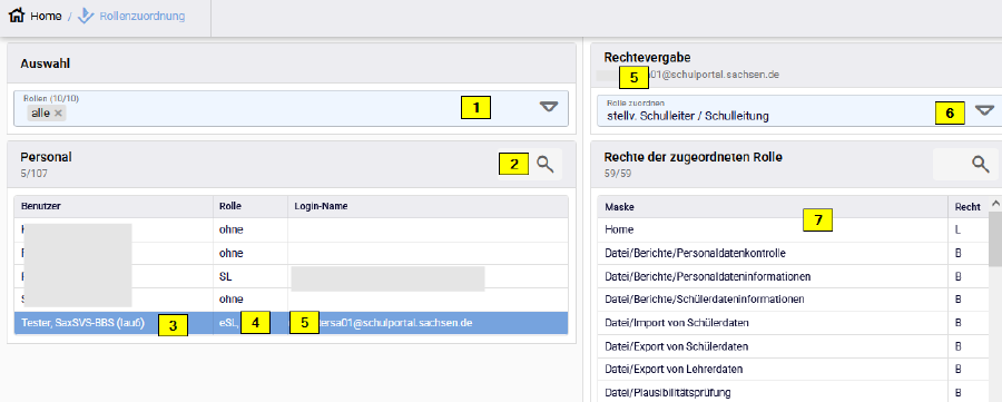 | 4 | zugeordnete Rolle(n) der Nutzer | Berechtigungen sind immer nach der höchsten Rolle eingestellt |