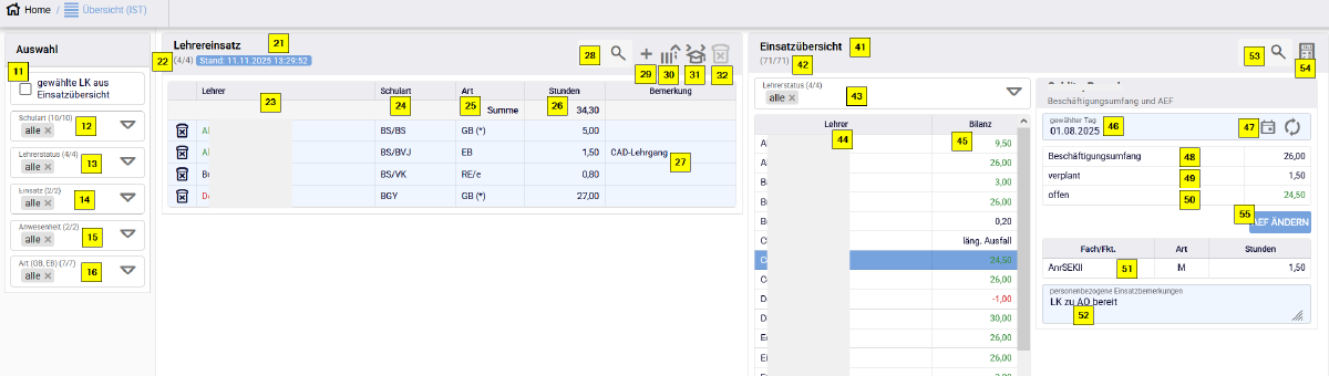• IST: der Bereich "verplante Stunden" ist die Summenbildung aus den Personaleinsätzen der einzelnen Lehrkräfte