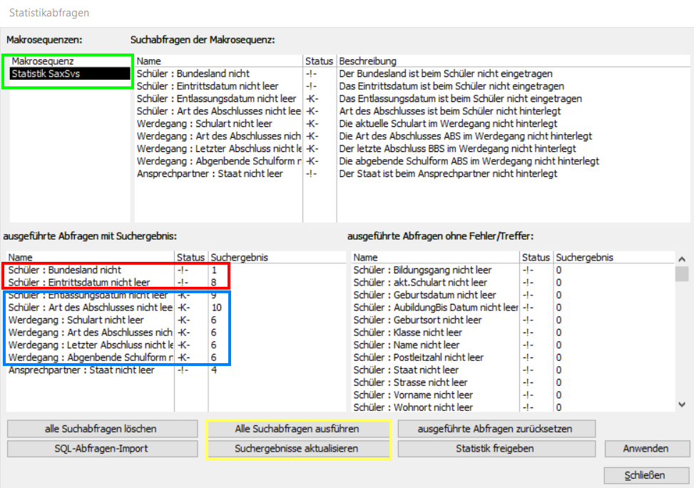 • Über den Export und eingestellte Filter in Excel können die Daten der amtlichen Schulstatistik ermittelt werden, solange diese Aktion noch nicht über SaxSVS-BBS gewährleistet werden kann.