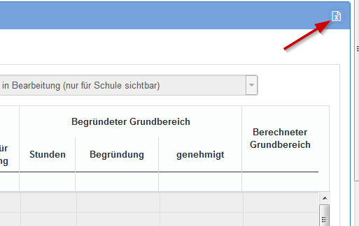 | Schule | Eintragen des "Begründeten Grundbereichs" (Stunden und Begründung) |