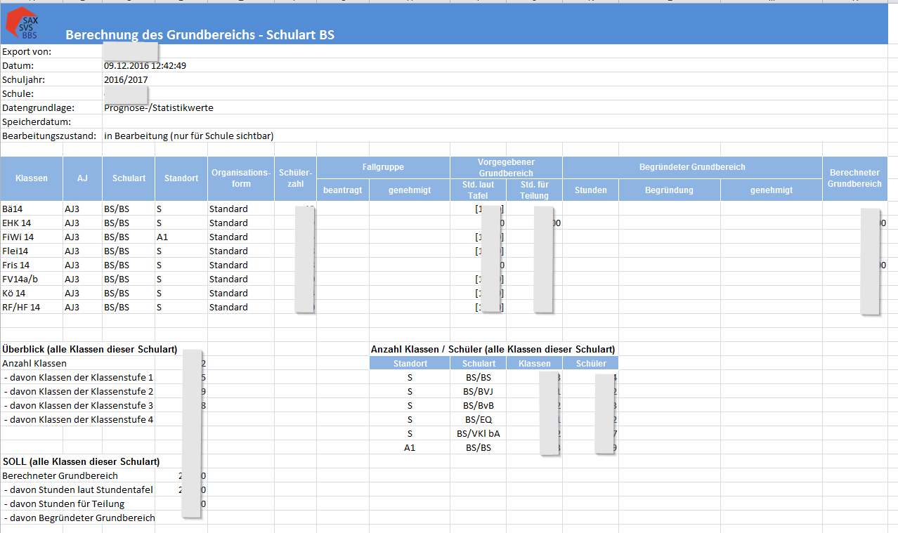 | 15 | Berechneter Grundbereich | - hier ist der Bedarf für diese Klasse abgebildet (Summe aus Vorgegebener Grundbereich und Begründeter Grundbereich) |