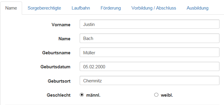 - Klassenbezeichnung (mit der Klasse wird der Bildungsgang gespeichert)
