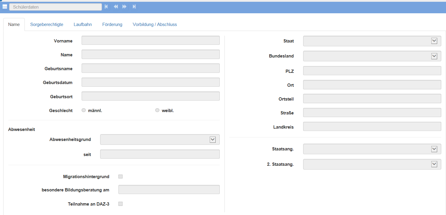 Vor der Aufnahme des Schülers müssen folgende Pflichtangaben bekannt sein: