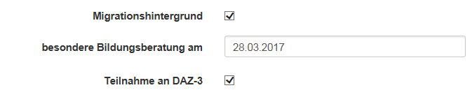 Das Feld „räumlichen Anforderungen“ ist für schulinterne Vermerke zur Förderung vorgesehen. Dieses Datenfeld wird nicht ausgewertet.