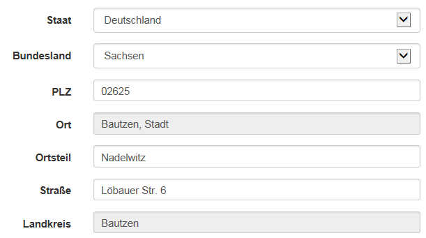 Für Personen, die außerhalb von Sachsen wohnen, ist nach der Wahl des Staates und ggf. des Bundeslandes der Wohnort frei eintragbar.