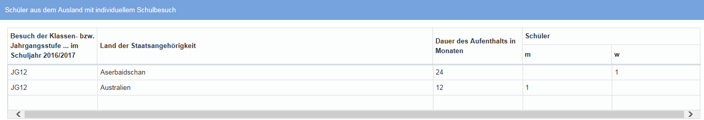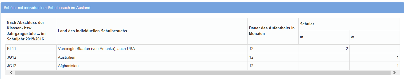 Menüaufruf: Schüler/Schüler mit individuellem Schulbesuch Sind Schüler für einen bestimmten Zeitraum als Gastschüler im Ausland, werden diese wie folgt abgebildet: