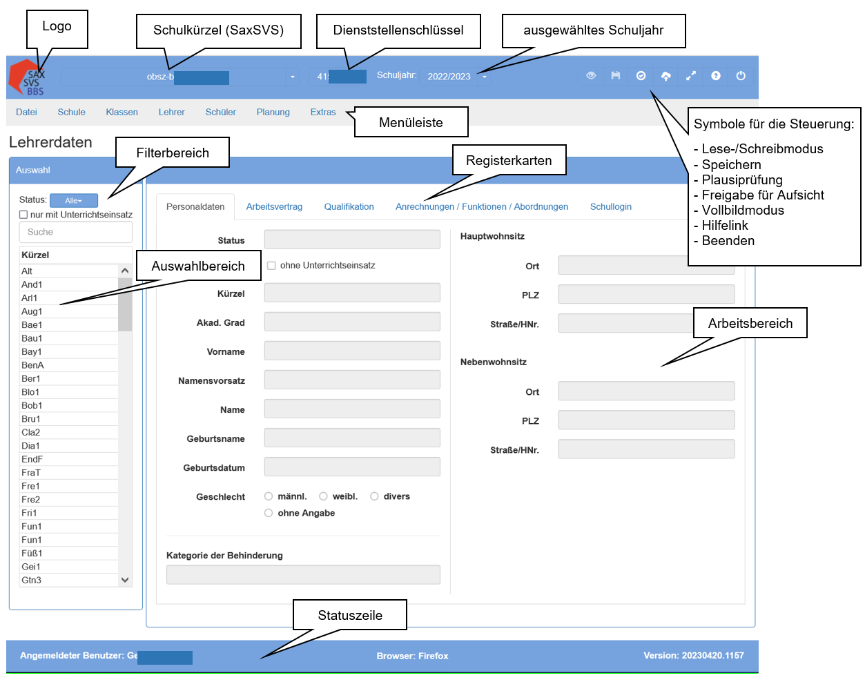Im SaxSVS-BBS-Schulmodul können Daten zur Schule, den Klassen, Schülern und Lehrern verwaltet werden. Außerdem werden in SaxSVS-BBS die Planungsdaten des aktuellen und kommenden Schuljahres sowie der Personaleinsatz abgebildet.