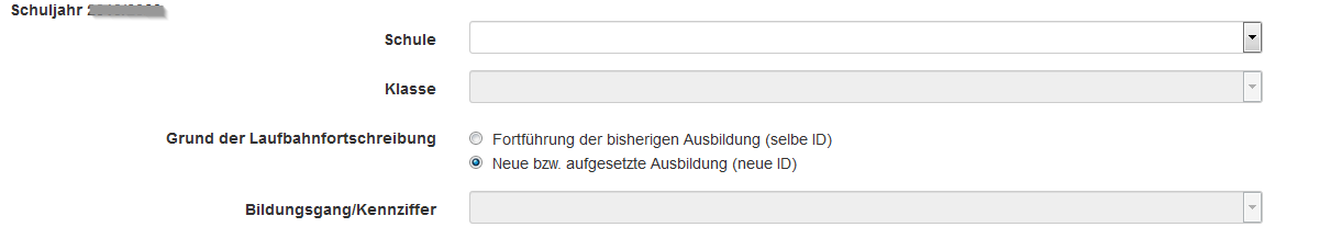 • Wurde die vorhergehende Ausbildung nicht abgeschlossen (bspw. bei Wechsel innerhalb der Lehre in einen artverwandten Beruf), kann mit dem Schülerdatensatz weitergearbeitet werden und er muss nicht dupliziert werden.