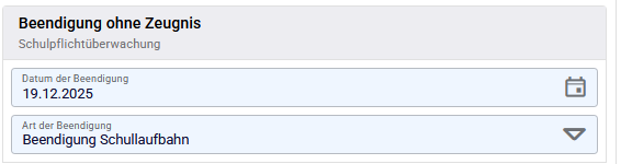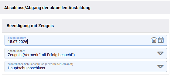 | 2 | Ausbildung ab | Datum des ersten Schultages einstellen | vorgefüllt mit 01.08.XXXX |